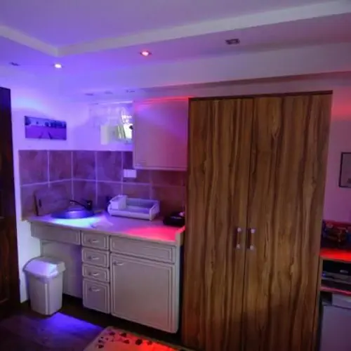 Każdy pokój jest wyposażony w telewizor z telewizję kablową i odtwarzacz video, radio, zegar oraz dostęp do sieci internetowej. Na poziomie pokoi umieszczona jest kuchnia dla gości. Zostały umieszczone w niej wszystkie sprzęty pozwalające na przygotowanie posiłków m.in. kuchenka elektryczna, kuchenka mikrofalowa, okap, lodówka, dzbanek elektryczny, zlewozmywak. Obok kuchni znajduje się również jadalnia. Przy budynku są usytuowane dwa oddzielne miejsca do kameralnej biesiady przy grillu. Cała posesję pokrywają drzewa, krzewy, winogrona i bluszcze. Samochody gości parkujemy na posesji zamykanej na noc.