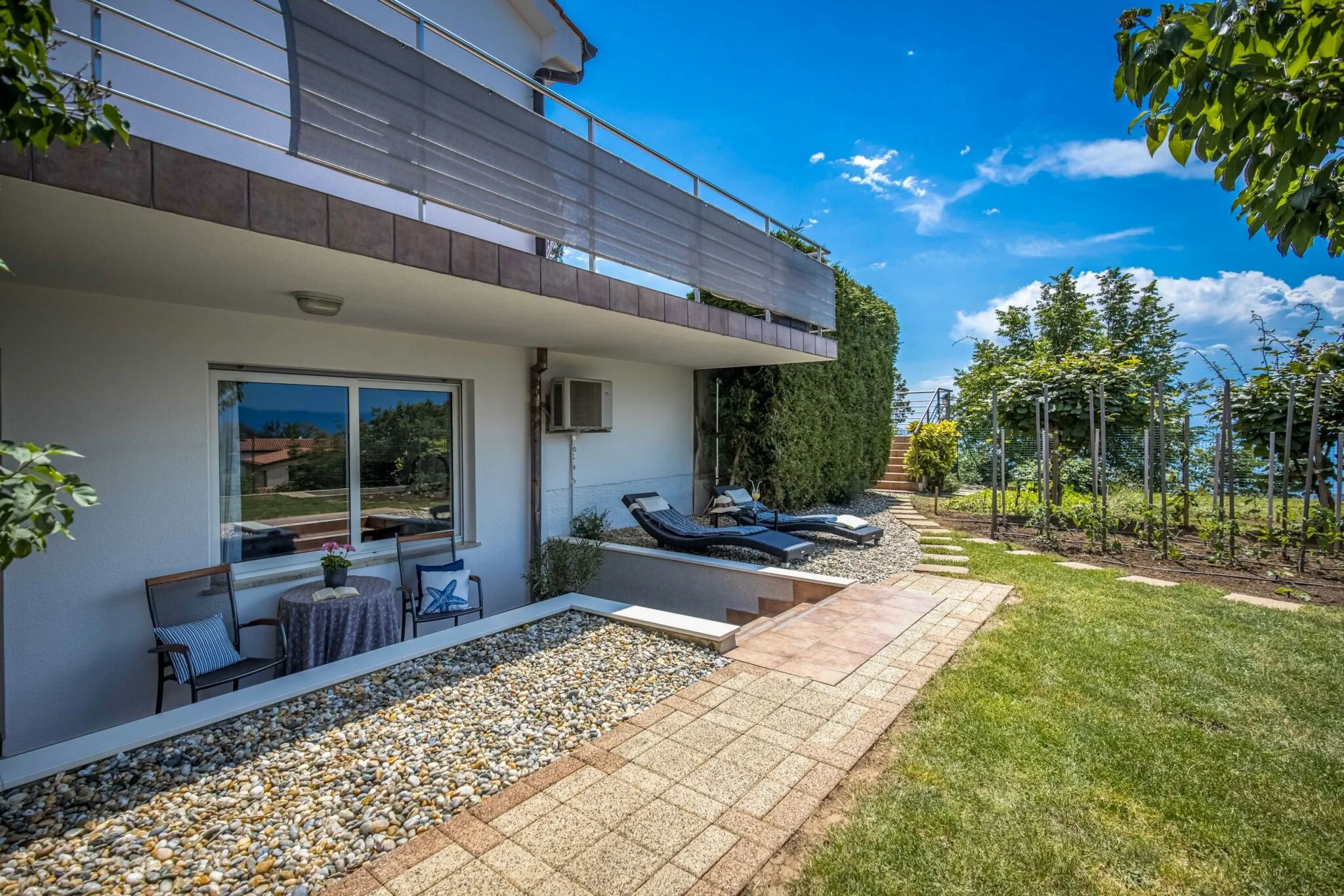 Terra Magica Deluxe Apartment & Three-Bedroom Room znajdują się w najpiękniejszej części Grobnika, w osadzie Hrastenica, z pięknym widokiem na Zatokę Kvarner i Riwierę Opatija, w pobliżu miasta Rijeka i miasta Čavla, miejsce położone pomiędzy morzem a górami. Mieszkanie i pokój trzyosobowy wyposażone są w bezpłatny bezprzewodowy dostęp do Internetu, centralne ogrzewanie w zimie, klimatyzację i parking. Kwatery znajdują się w rodzinnej willi otoczonej ogrodem krajobrazowym i drzewami owocowymi. Apartament znajduje się na parterze willi, natomiast pokój trzyosobowy znajduje się na pierwszym piętrze. Przed apartamentem znajduje się taras i część z leżakami do wypoczynku, natomiast pokój trzyosobowy posiada duży balkon z fenomenalnym widokiem na zatokę Kvarner. Doskonała lokalizacja na wypoczynek w ciszy natury, a jednocześnie blisko miasta. Idealny dla wszystkich gości, którzy pragną spokoju na łonie natury, a jednocześnie być blisko wszystkich możliwych atrakcji w naszej okolicy (zabytki, plaże, bary, restauracje, ośrodki narciarskie, parki narodowe, wyspy...)