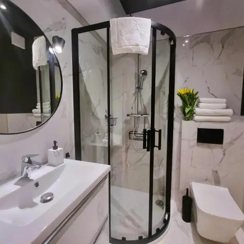 Goście mogą korzystać z bezpłatnego parkingu przy obiekcie, co zapewnia wygodę i bezpieczeństwo. Apartamenty posiadają prywatną łazienkę, a wiele z nich oferuje balkon lub taras, idealne do wypoczynku na świeżym powietrzu. Apartament jest wyposażony w szybkie WiFi, dzięki czemu można swobodnie korzystać z Internetu, pracować zdalnie lub oglądać ulubione filmy.