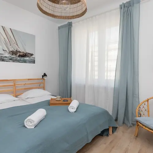 Stylowo zaprojektowany, w pełni wyposażony apartament ma możliwość zakwaterowania do 4 osób. Powierzchnia apartamentu jest bardzo funkcjonalna, składa się z salonu, niezależnej kuchni, oddzielnej części sypialnej oraz łazienki z toaletą i prysznicem. Przestrzeń jest jasna i nowoczesna, o gustownym i przemyślanym wystroju tworzącym przyjazną i ciepłą atmosferę. Komfort pobytu zapewnia wiele udogodnień, takich jak bezpłatne łącze WiFi, telewizor z płaskim ekranem oraz niezbędne wyposażenie kuchenne i łazienkowe.