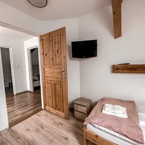 AgroSudety to stylowo urządzony, przestronny dom o powierzchni 150 m², idealny dla rodzin i grup przyjaciół. Obiekt oferuje od 4 do 8 miejsc noclegowych w trzech sypialniach, dwie łazienki, dwie toalety oraz duży salon z kominkiem (50 m²). Goście mają do dyspozycji w pełni wyposażoną kuchnię z nowoczesnymi sprzętami, a w całym domu działa ogrzewanie podłogowe i bezpłatne Wi-Fi.