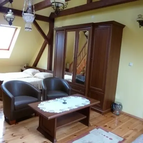 Oferujemy Państwu wypoczynek w komfortowo wyposażonym, otoczonym ogrodem, domu z balkonem i tarasem widokowym, w którym może przebywać 12 osób: w pokojach 2-os. z łazienkami i TV oraz w apartamencie z kominkiem i antresolą.