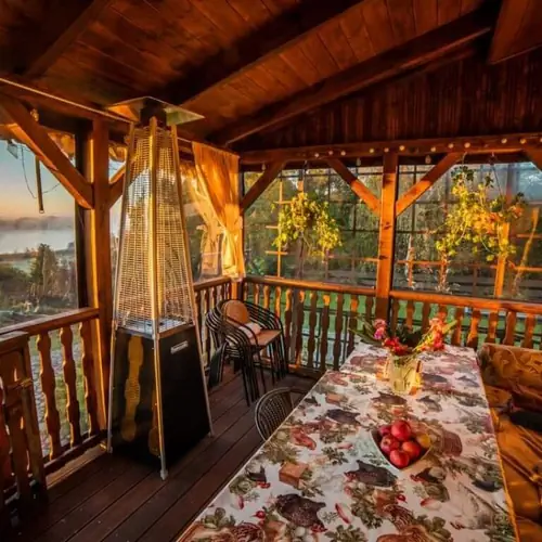 Domek drewniany 4-osobowy z łazienką z widokiem na ogród