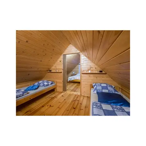 Dodatkowo oferujemy nowy (2017 r.) 2-poziomowy domek przeznaczony dla 6 osób, na górze dwie sypialnie jedna z 2-osobowym małżeńskim łóżkiem, druga sypialnia – dwa 1-osobowe łóżka. Na dole salon, kuchnia i łazienka.