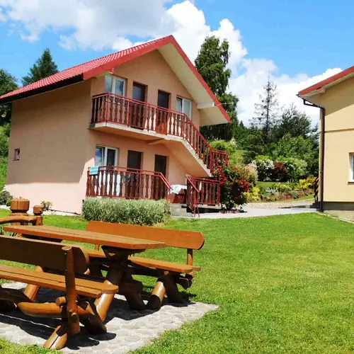 Gospodarze oferują całoroczny wolnostojący domek tylko dla swoich Gości, a w nim pokoje 2-, 3- i 4-osobowe, każdy z pełnym węzłem sanitarnym i wejściem z zewnątrz. Dodatkowo pokoje są wyposażone w lodówkę, czajnik i TV. Gospodarze udostępniają również tańsze pokoje z łazienką na korytarzu. Obok domu znajdują się ławeczki, altana oraz dużo zieleni. W ogrodzie można rozstawić kilka namiotów.