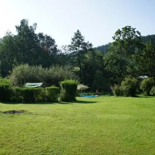 Na życzenie turystów łowimy pstrągi, smażymy i podajemy na świeżym powietrzu przy drewnianych ławach. W wydzielonym miejscu można rozpalić ognisko lub biesiadować pod zadaszeniem przy murowanym grillu. Przez teren gospodarstwa przepływa górski strumień, a tuż obok domu znajdują się stawy rybne.