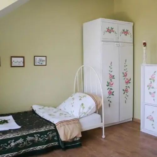 Przebywającym w ośrodku proponujemy również relaks w naszym dużym ogrodzie, wśród bujnej roślinności. W marcu spacery umilają kwitnące krokusy, w kwietniu i maju oczy cieszą kolorowe rododendrony i „wysyp” ponad tysiąca tulipanów. Zachęcamy do skorzystania z dobrodziejstw sadu, który w kwietniu upaja niezwykłym zapachem kwitnących kwiatów i dźwiękiem pracujących w nim pszczół, w czerwcu i lipcu pozwala rozkoszować się smacznymi owocami. W upalne dni można ochłodzić się w przydomowym basenie. Dla dzieci w domu kącik zabaw, na zewnątrz fantazyjna ciuchcia rozbudza podróżnicze pasje. Zimą niezwykle urokliwie wygląda plantacja choinek jodłowych.