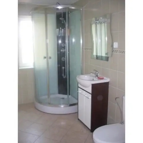 • dwie oddzielne łazienki na korytarzu, każda wyposażona w prysznic