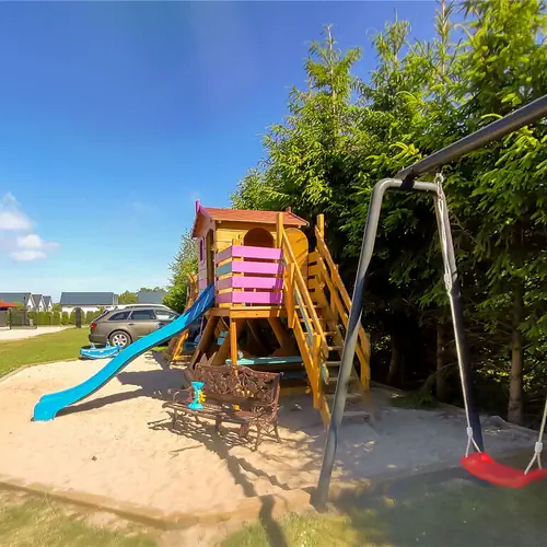 W obrębie ogrodzonego osiedla domków Alma znajduje się plac zabaw – wyposażenie zapewnia atrakcje dla dzieci w różnym wieku.