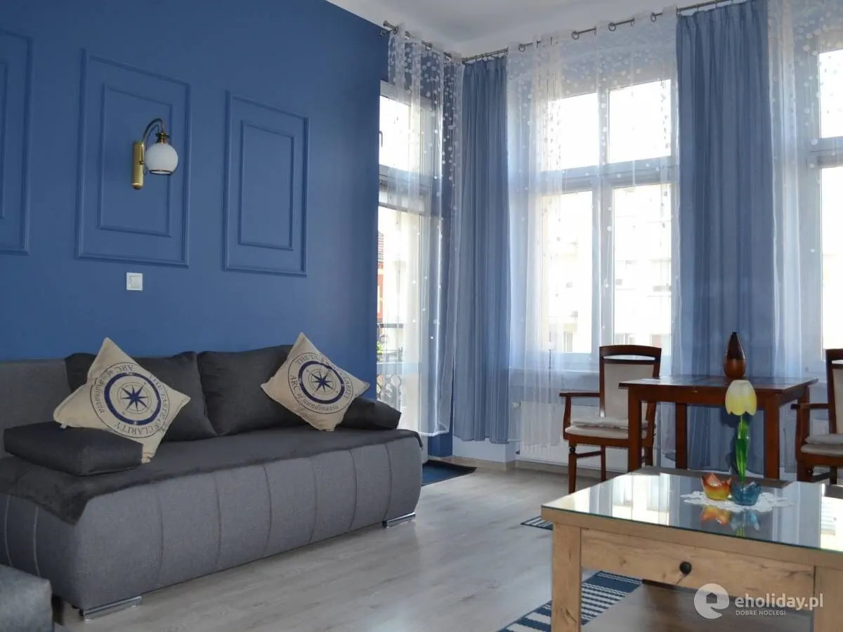 Apartament znajduje się w pięknej starej kamienicy przy ul. Paderewskiego na 2 piętrze. Składa się z przestrzennego salonu z wyjściem na balkon z dwoma dwuosobowymi wygodnymi kanapami, szafą, dużą komodą, rozkładanym stołem, ławą ; przedpokoju z szafą zaopatrzoną w kompletny sprzęt plażowy, żelazko, deska do prasowania ; sypialni z szerokim łożem małżeńskim, szafkami nocnymi, szafą i komodą; pokoju z aneksem kuchennym w pełni wyposażonym w : lodówkę, kuchenkę elektryczna czteropalnikowa z piekarnikiem, kuchenkę mikrofalowa, ekspres do kawy i skórzany dwuosobowy narożnik do spania ; łazienka z prysznicem i WC