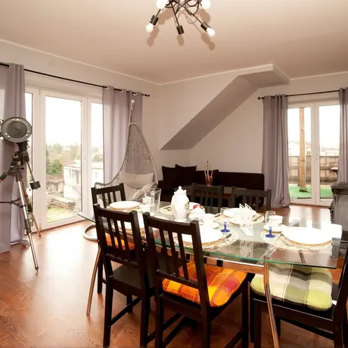 Zapraszamy do komfortowego 100 metrowego apartamentu w cichej dzielnicy Pucka. Oddajemy do Państwa dyspozycji komfortowy 6-8-osobowy apartament w zacisznej dzielnicy Pucka. Apratament składa się z 3 pokoi, w tym jeden z aneksem kuchennym i łazienki. W salonie znajduje się kominek.