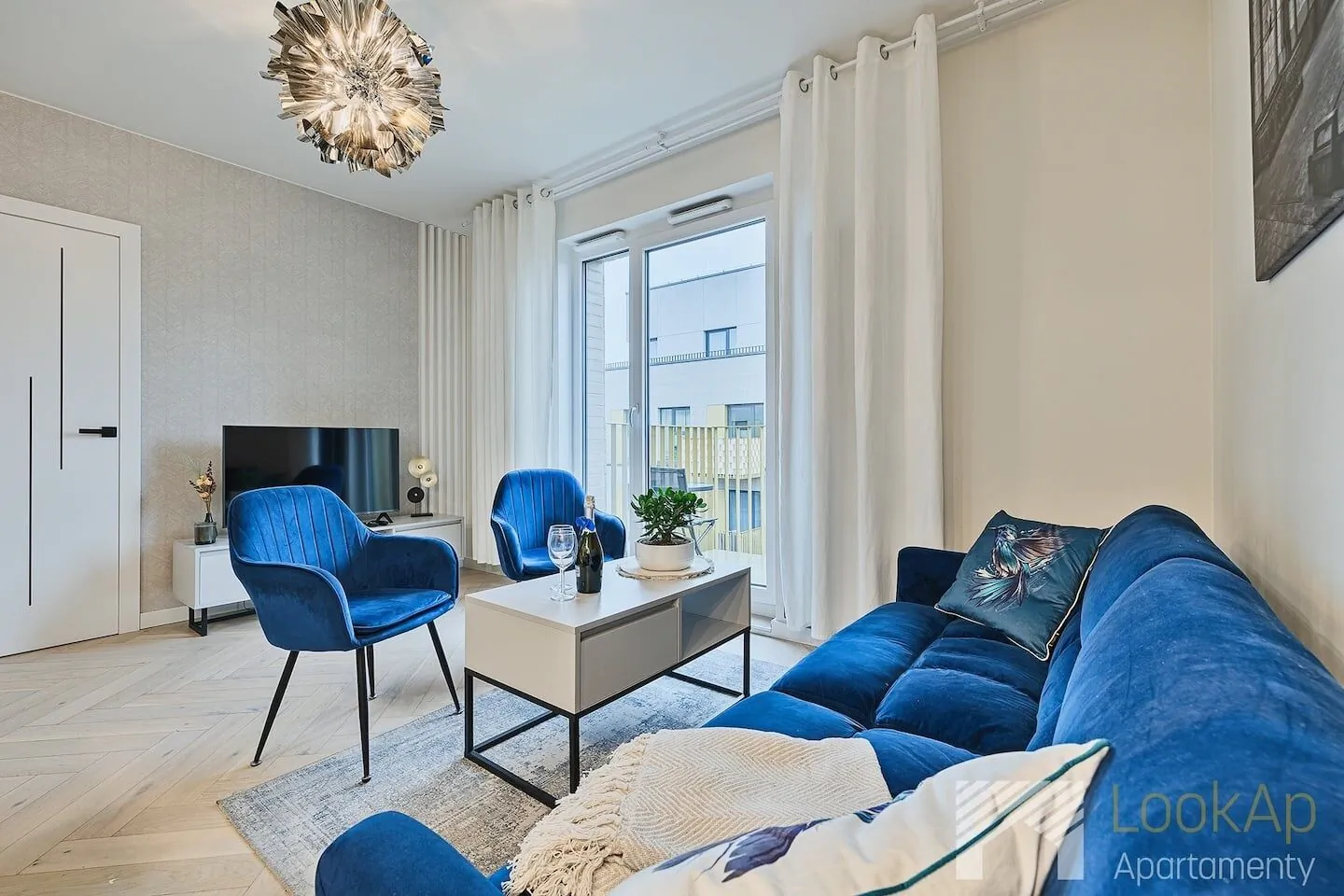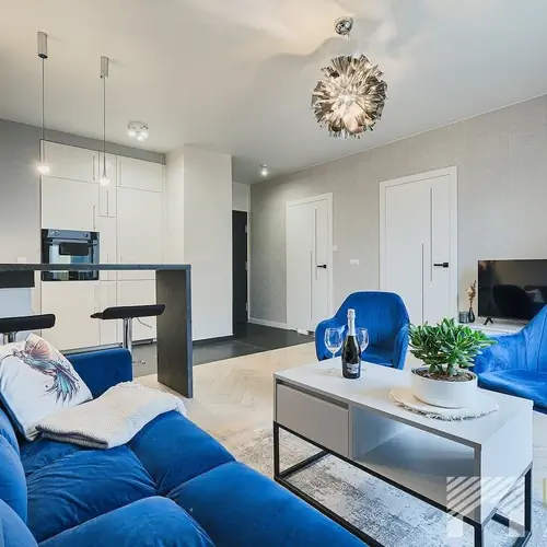 Układ apartamentu: Wchodząc znajdujemy się w klimatycznym mieszkaniu zaprojektowanym w stylu glamour. Salon z aneksem kuchennym wyposażonym w lodówkę, zmywarkę, piekarnik, płytę indukcyjną oraz ekspres. Po lewej stronie mieści się osobna, duża sypialnia oraz łazienka z WC i prysznicem, dodatkowo balkon. Ponadto wyposażenie apartamentu obejmuje, czajnik elektryczny, żelazko, suszarkę do włosów, odkurzacz. zastawę stołową, sztućce, przybory kuchenne, garnki, patelnię, filiżanki, kubki, świeżą pościel, puszyste ręczniki, pralkę i elementy ozdobne, które pozwolą poczuć się jak w domu. W ofercie apartamentu znajduje się telewizja oraz bezpłatne Wi-Fi. Mieszkanie posiada ogrzewanie miejskie. Wzdłuż ulicy znajduje się bezpłatny parking miejski, gdzie można parkować w wyznaczonych miejscach.