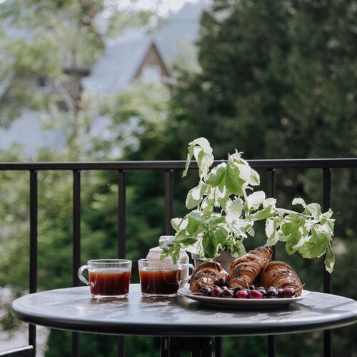 Aneks kuchenny: czajnik elektryczny, ekspres do kawy (kolbowy), lodówka, zmywarka, 2 palnikowa płyta elektryczna, kuchenka mikrofalowa, komplet naczyń i sztućców, zastawa szklana