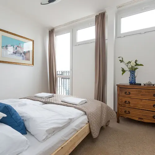 Trzypokojowy apartament w samym centrum Biznesowym Warszawy. Mieszkanie na 14 piętrze, jest winda. Trzy pokoje, w pokoju dziennym rozkładana sofa, w obu sypialniach łóżka dwuosobowe. Oddzielna Kuchnia otwarta na salon. Oczywiście jest TV, telewizja kablowa i stały dostęp do Internetu.