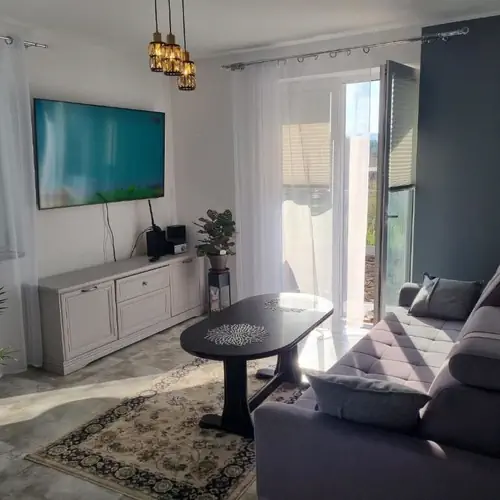 Apartament oferuje komfortowy pobyt dla naszych gości w wysokim standardzie i atrakcyjnym położeniu, W skład apartamentu wchodzi: sypialnia /podwójne łózko/salon z możliwością spania /sofa rozkładana/ Kuchnia połączona z salonem wyposażona w podstawowe elementy kuchenne ,które umożliwią przygotowanie posiłków według uznania/ Z salonu wyjście na duży taras i na ogród .Łazienka z prysznicem toaletą ,urządzona w gustownym stylu. Prywatne miejsce parkingowe -wyznaczone i możliwość postawienia drugiego samochodu na terenie ogrodu należącego do apartamentu