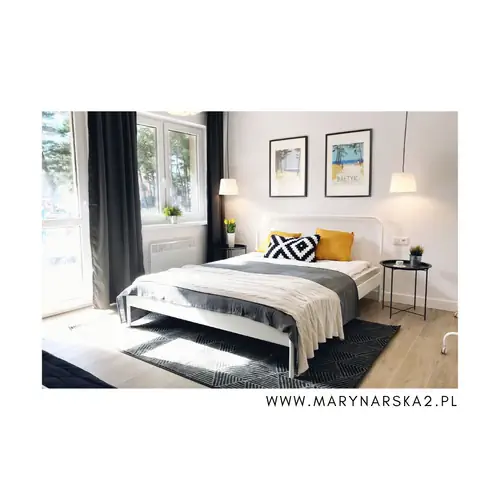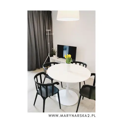 Apartament Marynarska2 /4 – apartament na parterze, o pow. 36 m2, przeznaczony dla 4, do maksymalnie 6 osób z wejściem od strony dziedzińca. Apartament składa się z przestronnego salonu z aneksem kuchennym i częścią jadalnianą oraz dużej sypialni w której znajduje się szerokie łóżko, wygodna, rozkładana, dwuosobowa sofa (identyczna znajduje się również w salonie) , TV, duża szafa i biurko. Łazienka posiada prysznic oraz pralkę. Kuchnia w pełni wyposażona (płyta grzewcza, lodówka, czajnik, naczynia itp). Apartament posiada taras na który wychodzi się z sypialni. Od strony wejścia głównego do apartamentu znajduje się plac zabaw dla dzieci.