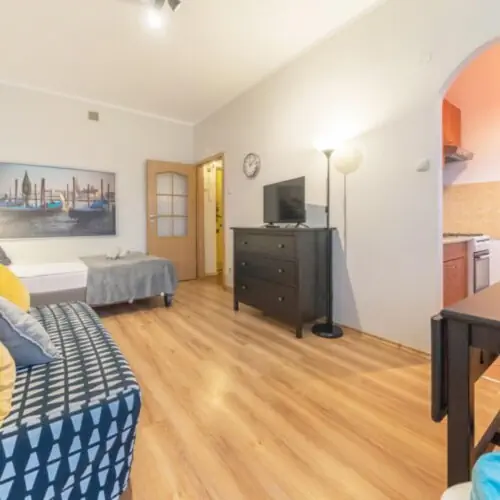 Oferujemy noclegi w komfortowo wyposażonym, zupełnie samodzielnym jednopokojowym mieszkaniu znajdującym się w kamienicy.