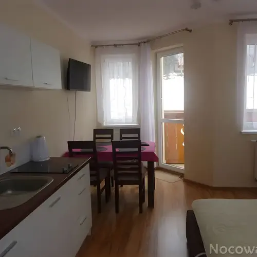 Apartament jest nowy, jasny i funkcjonalnie urządzony. Składa się z jednego przestronnego pokoju z aneksem kuchennym, łazienki oraz balkonu. To idealne miejsce zarówno na romantyczny wyjazd, jak i pobyt wypoczynkowy w górach.