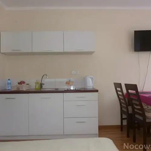 Aneks kuchenny jest w pełni wyposażony – do dyspozycji Gości jest lodówka, płyta elektryczna, garnki oraz komplet naczyń, co umożliwia samodzielne przygotowywanie posiłków.