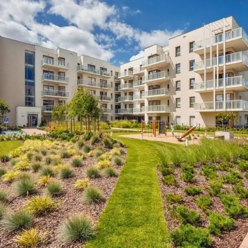 Oferujemy Państwu nowoczesne, komfortowe apartamenty położone w cichym, spokojnym miejscu, w sąsiedztwie dwóch parków. Osiedle jest zamykane i monitorowane, dzięki czemu nasi Goście mogą czuć się w pełni bezpiecznie. Lokalizacja jest polecana tym osobom, które chciałby odpocząć od zgiełku miasta. W ciągu 15 minut mogą Państwo dotrzeć stąd do plaży. Osiedle zostało ciekawie zaprojektowane. Obiekt jest wyposażony w windę.