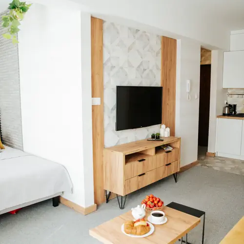 Wszystkie apartamenty posiadają formułę samoobsługową. Instrukcja check-in wysyłana jest na jeden dzień przed przyjazdem wraz z kodem… oczywiście zawsze istnieje możliwość zameldowania w sposób tradycyjny. Pokoje zostały zaprojektowane z myślą o każdym, kto w podróży chciałby poczuć się wyjątkowo. Spotkają tu Państwo połączenie komfortu z funkcjonalnością. Powierzchnia została dostosowana do potrzeb każdego wymagającego gościa. Apartamenty posiadają aneks kuchenny, sypialnię z łóżkiem typu king-size z materacem najwyższej jakości