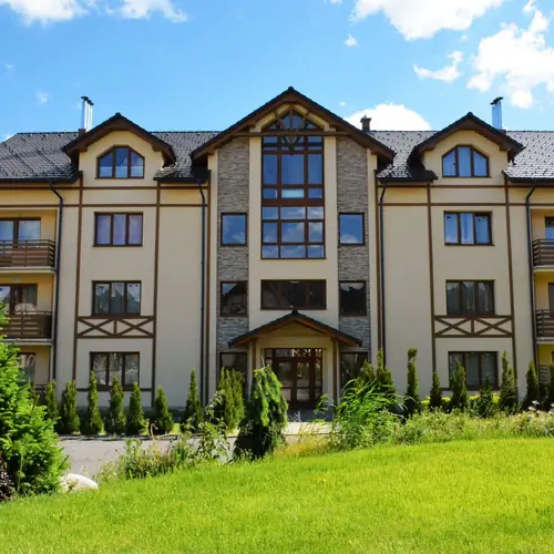 Każdy apartament posiada w pełni wyposażony aneks kuchenny z lodówką, część wypoczynkową z rozkładaną sofą, telewizor z płaskim ekranem, pralkę oraz prywatną łazienkę z prysznicem i suszarką do włosów. Do dyspozycji Gości jest kuchenka mikrofalowa, kuchenka, okap i czajnik elektryczny.