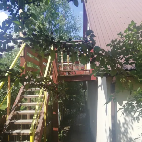 Piętro - dwa pokoje, łazienka, mały aneks kuchenny .