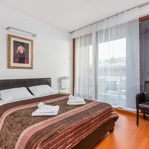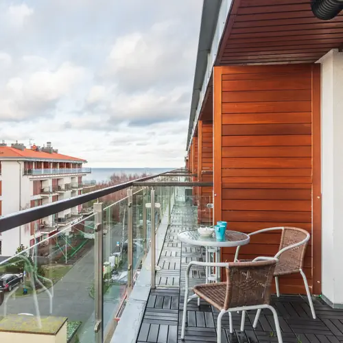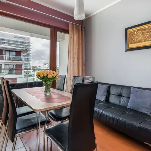 W pełni wyposażony apartament z balkonem przeznaczony jest maksymalnie dla 8 osób. Mieszkanie składa się z pokoju dziennego z aneksem kuchennym, dwóch sypialni oraz łazienki z prysznicem. Idealnie zaprojektowane z myślą o wakacjach nad morzem, umeblowanie i wyposażenie apartamentu jest gwarancją bezstresowego pobytu. W apartamencie goście znajdą kompleksowe wyposażenie kuchenne: ekspres do kawy, toster, piekarnik, co pozwala na łatwe i elastyczne przygotowywanie posiłków, zupełnie jak w domu. Na powitanie goście otrzymają bezpłatny pakiet kosmetyków, ręczniki i pościel. Na życzenie, rodzice podróżujący z dziećmi mogą zarezerwować dla swoich pociech krzesełko do karmienia oraz łóżeczko dziecięce (obowiązuje dodatkowa opłata w wysokości 50 zł/dzień).