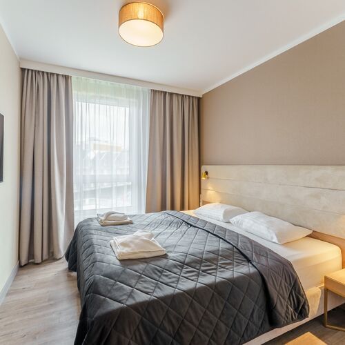 Przestronne wnętrze i przytulny wystrój, to cechy charakterystyczne dla apartamentu znajdującego się w nowoczesnym kompleksie Bel Mare. Starannie zaprojektowana powierzchnia apartamentu jest odpowiednia dla 5 osób - idealny na pobyt nad morzem z rodzina czy przyjaciółmi. Przestrzeń obiektu oferuje salon z aneksem kuchennym, sypialnię oraz łazienkę z prysznicem. Wnętrze zachęca nowoczesną, a jednocześnie przytulną, atmosferą dzięki dobrze dobranej kolorystyce wraz ze stylowymi dodatkami. Część dzienna z wygodną sofą (oraz dodatkowo łóżkiem turystycznym w formie dostawki) i telewizorem typu Smart TV, to doskonałe miejsce do odpoczynku i relaksu. W sypialni znajduje się łóżko małżeńskie, TV oraz pojemna szafa. Nawet wewnątrz apartamentu goście mogą cieszyć się nadmorską atmosferą relaksując się na balkonie wyposażonym w meble ogrodowe – idealny na odpoczynek w ciepłe, letnie wieczory. Szeroki wachlarz udogodnień oraz kompleksowe wyposażenie apartamentu w niezbędne akcesoria i sprzęty kuchenne (ekspres do kawy, kuchenka mikrofalowa, zmywarka, płyta indukcyjna) jak i łazienkowe (pralka, suszarka do włosów) gwarantuje komfort pobytu i zwiększa niezależność naszych Gości. Multimedia obejmują bezpłatne łącze internetowe Wi-Fi oraz telewizor z płaskim ekranem – świetnie sprawdzi się na wieczorne seanse filmowe. Na dobry początek każdego pobytu zapewniony jest bezpłatny zestaw kosmetyków, ręczniki i pościel. Wysublimowana aranżacja apartamentu oraz wysokiej jakości wyposażenie gwarantują pobyt na najwyższym poziomie. Rodzice podróżujący z dzieckiem mają także możliwość rezerwacji łóżeczka dla swojej pociechy. Do apartamentu przynależy również prywatne miejsce parkingowe w hali garażowej, co jest atutem, szczególnie w sezonie wakacyjnym. Dzięki tym zaletom apartament jest idealnym wyborem na beztroski pobyt nad morzem.