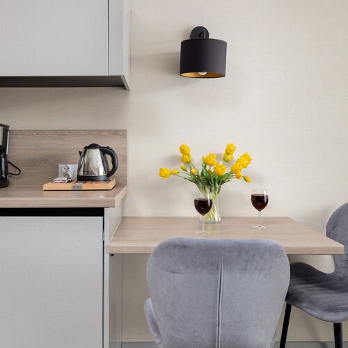 Nowoczesne i świetnie wyposażone studio oferuje komfortowe miejsce noclegowe dla trzech osób, dzięki czemu jest ono idealnym wyborem dla pary, lub rodziców z dzieckiem. Stylowo urządzony apartament o powierzchni 28 m², składa się z niezwykle funkcjonalnej części mieszkalnej z wygodnym łóżkiem małżeńskim, aneksu kuchennego z niezbędnymi sprzętami oraz łazienki. Do studia przynależy również balkon z meblami ogrodowymi, który jest świetnym miejscem na relaks wraz z rodziną i miłe spędzenie czasu na świeżym powietrzu. Wyjątkowe wykończenie wnętrza w kolorystyce bieli i beżu sprawia, że miejsce to ma spokojny i niezwykle przyjemny klimat. Szeroki wachlarz udogodnień gwarantuje wysoki komfort pobytu. Kompleksowe wyposażenie kuchenne w postaci kuchenki mikrofalowej, ekspresu do kawy, zmywarki, czy płyty indukcyjnej, umożliwi gościom swobodne przygotowanie świeżych posiłków. Znajdujący się w studio telewizor z funkcją SmartTV oraz bezpłatny dostęp do sieci Wi-Fi, dodatkowo umilą długie wieczory. Dzięki wygodnemu biurku Goście będą mogli zadbać również o obowiązki służbowe i pracować zdalnie. Osoby podróżująca ze zwierzętami są tu mile widziane, ponieważ jest to apartament przyjazny pupilom (obowiązuje dodatkowa dopłata).
