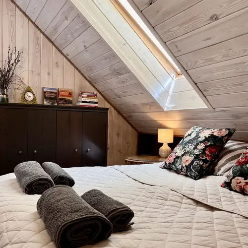 Pobyt w Chacie Bieszczadzkiego Hożego Rysia dedykowany jest dla osób dorosłych i dzieci 10+. Obiekt posiada dwa niezależne apartamenty z oddzielnymi wejściami, które znajdują się na piętrze drewnianej chaty, na parterze rezydują gospodarze.
