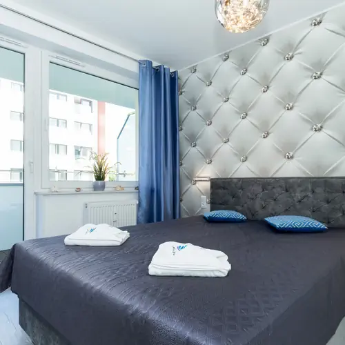 Przestrzeń apartamentu oferuje salon z aneksem kuchennym, sypialnię oraz łazienkę z prysznicem. Apartament wyróżnia się przytulnym wystrojem, estetyką oraz funkcjonalnością. Część mieszkalna wyposażona w wygodną sofę, TV i wyjście na balkon stanowi doskonałe miejsce odpoczynku i relaksu. W sypialni znajduje się wygodne łóżko oraz TV. Przestrzenny balkon będzie świetny na odpoczynek w ciepłe, letnie wieczory. Dodatkowo, wyposażony w wysokiej jakości sprzęt, aneks kuchenny umożliwia przyrządzenie ulubionych posiłków. Ekskluzywny design oraz kompleksowe wyposażenie w niezbędne akcesoria kuchenne oraz łazienkowe gwarantują komfort pobytu. Rodzice podróżujący z dzieckiem mają także możliwość rezerwacji łóżeczka oraz krzesełka dla swojej pociechy.
