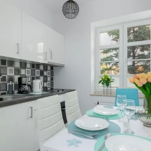 Nowoczesny, w pełni wyposażony apartament może pomieścić 6 osób - idealne miejsce na pobyt z rodziną lub przyjaciółmi. Apartament oferuje przestronny salon, oddzielną kuchnię, dwie sypialnie, łazienkę i balkon. Mieszkanie wyróżnia nowoczesny wystrój, estetykę i funkcjonalność. Powierzchnia mieszkaniowa wyposażona w sofę, telewizor i dostęp do słonecznego balkonu to idealne miejsce na odpoczynek i relaks. Dodatkowo w pełni wyposażona stylowa kuchnia pozwala wygodnie przygotowywać posiłki. Przestrzeń pierwszej sypialni jest wypełniona dwoma wygodnymi pojedynczymi łóżkami i biurkiem do pracy zdalnej. W drugiej sypialni znajduje się wygodne podwójne łóżko. Przytulna łazienka posiada prysznic, pralkę i ręczniki dla naszych gości. W apartamencie znajduje się miejsce parkingowe.