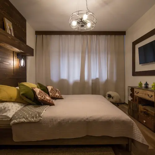 Ten komfortowy, przytulny apartament może ugościć do 6 osób - jest to idealny wybór na rodzinny wyjazd lub dla grupy przyjaciół. Centralnym punktem mieszkania jest salon z jadalnią, który zaprasza do wspólnych posiłków i rozmów, czy relaksu. W części wypoczynkowej znajduje się telewizor oraz wygodna rozkładana sofa. Z salonu można wyjść na balkon z meblami ogrodowymi i wiszącym fotelem, z którego rozciąga się przepiękny widok na wiślańskie góry. Atutem apartamentu są dwie osobne sypialnie z komfortowym podwójnym łóżkiem, gwarantującym wygodny odpoczynek po aktywnie spędzonym dniu. Goście mają do dyspozycji szybkie i darmowe Wi-Fi. Szeroki wachlarz udogodnień oraz kompleksowe wyposażenie apartamentu w niezbędne akcesoria i sprzęty kuchenne, jak i łazienkowe gwarantuje komfort pobytu. Apartament posiada dwie łazienki - jedną z prysznicem, drugą z wanną. Dla ułatwienia rozpoczęcia każdej wizyty zapewniono bezpłatny zestaw kosmetyków (mydło, szampon i żel pod prysznic), ręczniki oraz pościel. Na wyposażeniu mieszkania goście znajdą również pralkę, co z pewnością docenią rodziny z małymi dziećmi czy osoby planujące dłuższy pobyt. Wnętrze mieszkania charakteryzuje się subtelnym połączeniem nowoczesności i ciepła domowego ogniska. Apartament jest funkcjonalnie zaprojektowany, wychodząc naprzeciw wszelkim potrzebom gości.