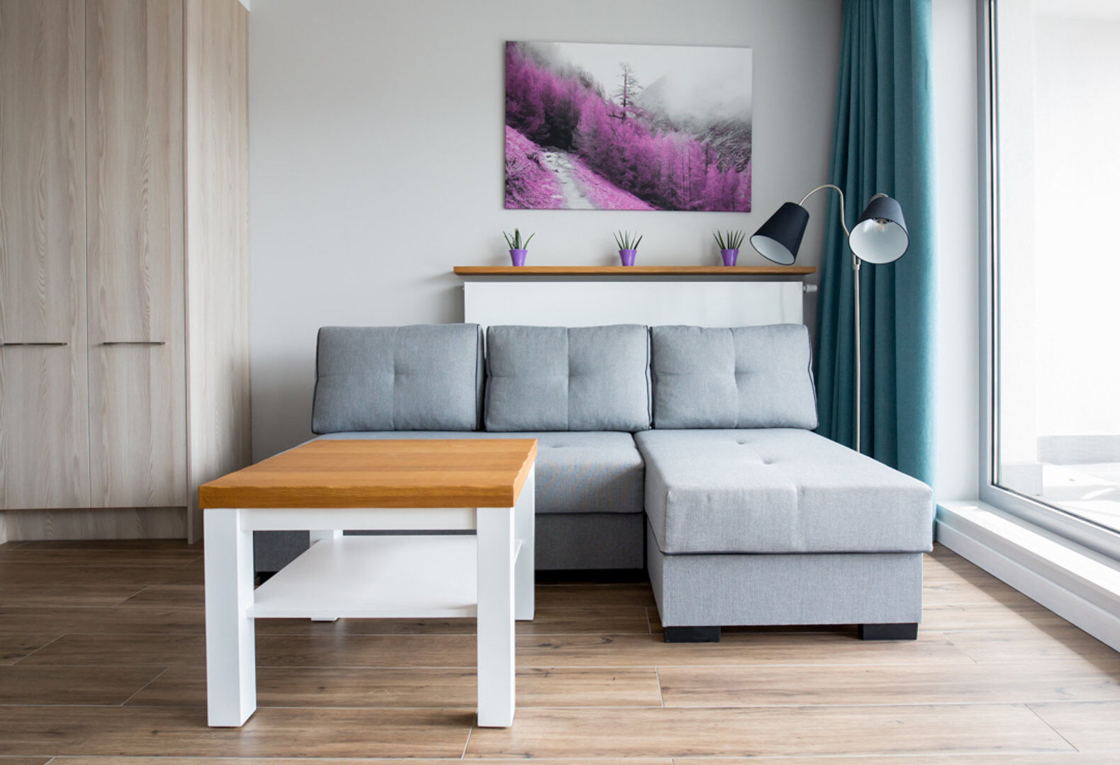 Ten apartament ma jedną sypialnię i jest doskonałym miejscem do wypoczynku dla osób podróżujących w celach biznesowych, par, a także rodziców organizujących wyjazdy ze swoimi pociechami. Piękny widok na góry sprawia, że warto wybrać się tutaj w poszukiwaniu inspiracji i po to, aby oderwać się od codzienności. Lokal usytuowany jest na parterze. Dzięki jasnemu i nowoczesnemu wystrojowi wnętrze prezentuje się elegancko i stylowo. To wspaniałe miejsce do tego, aby się zrelaksować w przytulnej atmosferze. W sypialni znajduje się duże łóżko dwuosobowe i telewizor, a zatem odwiedzający mogą relaksować się wieczorami przy kanałach telewizji naziemnej. Z kolei w salonie mieści się rozkładany narożnik w jasnoszarym odcieniu, fotel w wyrazistym, niebieskim kolorze oraz jadalniany stół z krzesłami. W tym pomieszczeniu również umieszczono telewizor. Posiłki można przygotowywać w funkcjonalnie wyposażonym aneksie kuchennym z kuchenką mikrofalową, piekarnikiem, tosterem oraz ekspresem do kawy. W łazience dostępny jest prysznic, powitalny zestaw kosmetyków i suszarka do włosów. Goście apartamentu mają również dostęp do umeblowanego balkonu. W apartamencie znajduje się też pralka. Do dyspozycji kierowców jest tu naziemne miejsce postojowe.