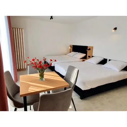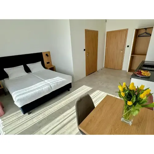 Wszystkie pokoje posiadają własne wyposażone aneksy kuchenne z lodówkami, łazienki z prysznicami oraz duże balkony z meblami tarasowymi.