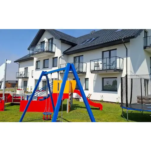 Najmłodszych naszych Gości zapraszamy do spędzenia czasu na świeżym powietrzu w strefie placu zabaw z huśtawkami i trampoliną.