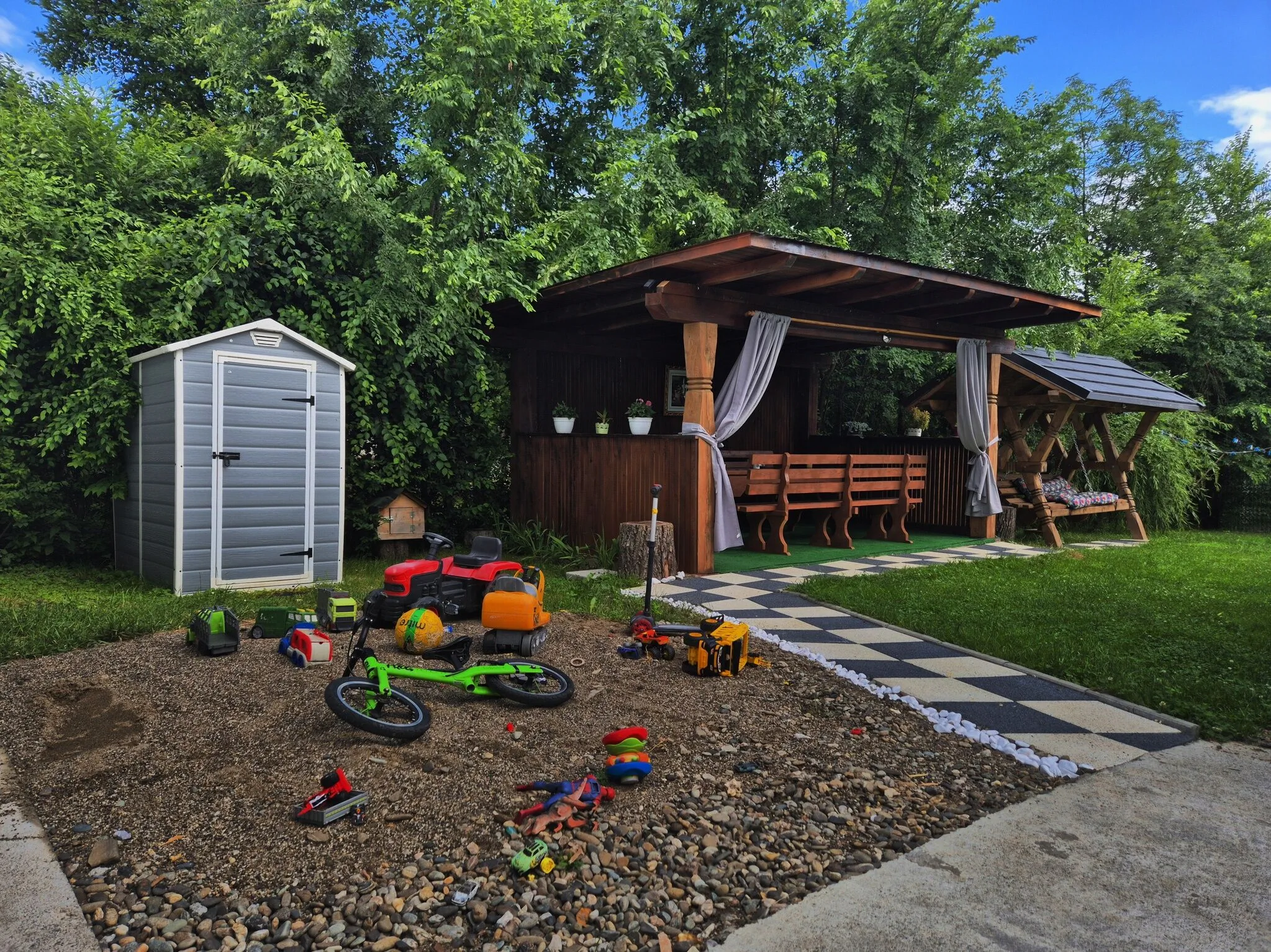 Możliwość gotowania (np. grillowania) na zewnątrz: Możliwość gotowania w kociołku (drewno opałowe za dopłatą), Dostępny kominek (drewno opałowe za dopłatą), Możliwość skorzystania z grilla