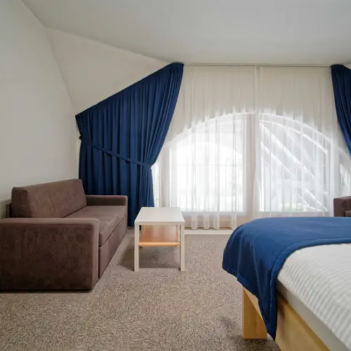 Pokoje, usługi Chateau de Frontiere Hlohovec oferuje 31 komfortowych pokoi dla gości poszukujących noclegu w Hlohovec. Możesz zabrać ze sobą swojego czteronożnego przyjaciela, Chateau de Frontiere Hlohovec również zezwala na pobyt małych zwierząt za dodatkową opłatą. Jeżeli jest taka potrzeba, możesz zostawić swój samochód na miejscu parkingowym hotelu bez dodatkowych kosztów. Nie musisz się martwić letnim upałem, w niektórych pokojach jest dostępna klimatyzacja (prosimy, upewnij się w arkuszu informacyjnym wybranego pokoju). Możesz znaleźć dokładną listę usług dostarczanych przez Chateau de Frontiere Hlohovec (zawierają również te wymagające dopłaty) i dokładne wyposażenie pokoi w informatorze poniżej, oraz w informatorze konkretnego pokoju.