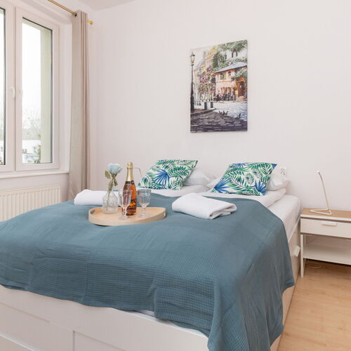 Ten przestronny apartament położony jest na 1. piętrze w kamienicy przy ulicy Chrobrego, w nadmorskim Sopocie. Stanowi idealną lokalizację na przyjemny wypoczynek nad morzem, niedaleko centrum miasta tętniącego życiem! Odległość do pięknej, piaszczystej plaży i wybrzeża Bałtyku to zaledwie 5 minut spacerem. Apartament leży 500 m od głównego deptaka Bohaterów Monte Cassino (tzw. Monciak). To tutaj znajduje się znany Krzywy Domek, Sopot Wax Museum oraz mnóstwo klimatycznych kawiarni i restauracji. W niedalekiej odległości od obiektu można także znaleźć punkty handlowo-usługowe zaspokajające wszystkie codzienne potrzeby (sklep Żabka - 250 m). Apartament oddalony mniej niż 1 km do słynnego Molo w Sopocie, 1.9 km od Opery Leśnej, 2.2 km od Ergo Areny i 2.5 km od Aquaparku Sopot. Kilka minut zajmie spacer do Parku Południowego czy na Skwer ks. Otto Bowiena. Lokalizacja sprawia, że goście mogą w pełni korzystać z uroków pięknego, polskiego, nadmorskiego kurortu.