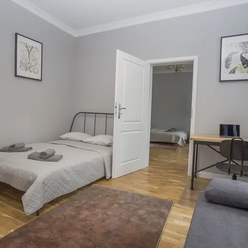 Doskonały apartament tuż po generalnym remoncie, położony w centrum miasta, zaledwie 50 m od Rynku Kościuszki – serca Białegostoku. To świetna lokalizacja zarówno dla turystów jak też podróżujących biznesowo. W pobliżu restauracje i puby z bogatą ofertą śniadań i obiadów. Dla amatorów domowego gotowania oddajemy do dyspozycji pełnowymiarową, kompletnie wyposażoną kuchnię oraz wygodny stół jadalniany. W tym przestronnym apartamencie znajdziesz dwie sypialnie, kuchnię i łazienkę. Oferujemy łóżka sypialniane 140 cm. X 200 cm. z bardzo wygodnym materacem. Mieszkanie jest wysokie - 3 m. Znajdziesz tu również świeżą pościel i ręczniki, kawę, herbatę, wodę. Apartament posiada także sprzęt niezbędny do prasowania oraz prania. W mieszkaniu dostępne jest szybkie WiFi oraz ponad 100 kanałów jakości HD. Serdecznie zapraszamy.