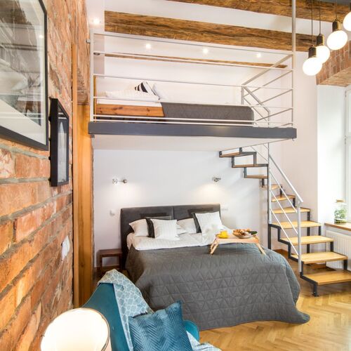 Apartament składa się z dwupoziomowej sypialni, łazienki z WC oraz jadalni z aneksem kuchennym i może wygodnie pomieścić 5 dorosłych osób. W apartamencie znajduje się podwójne łóżko oraz rozkładana sofa na dolnym poziomie oraz podwójne łóżko na antresoli.