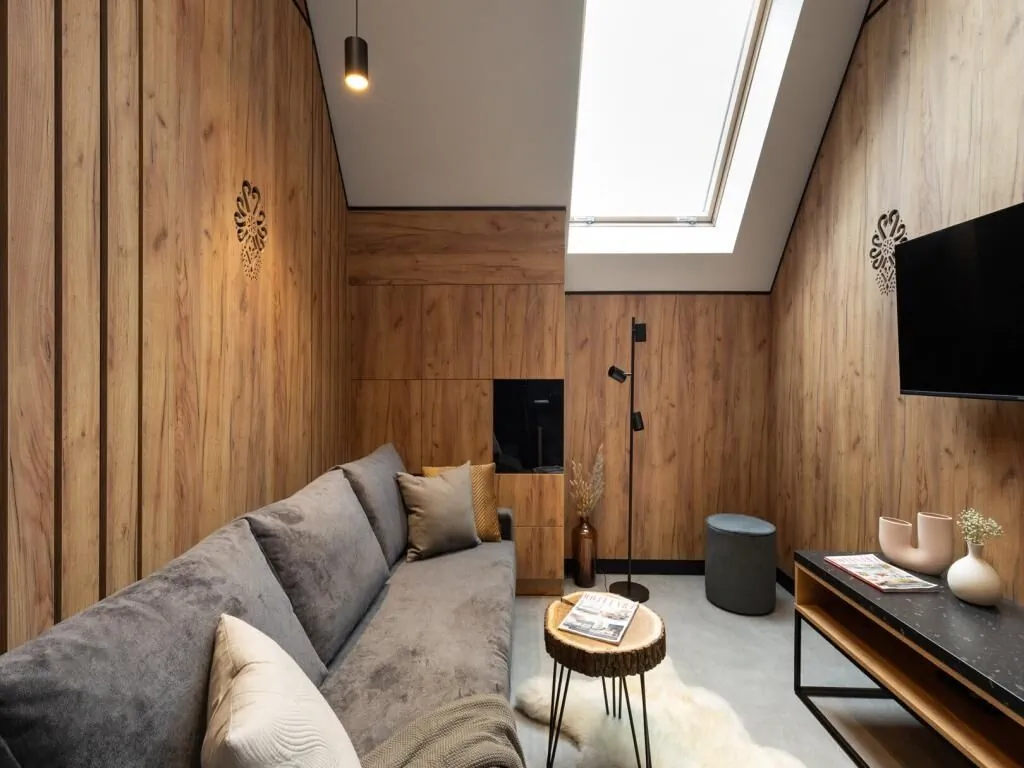 Luksusowy apartament o powierzchni 32,25 m², z osobną sypialnią, idealny nawet dla 5 osób, zapewniający komfortowy pobyt w górach.