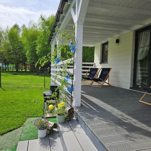 Podczas pobytu nasi Goście będą mogli dodatkowo odpocząć na dużym zadaszonym tarasie (wyposażonym w stół, ławki i leżaki) z którego można podziwiać otaczające nas widoki. W ogrodzie czeka również grill, palenisko z miejscem do rozpalenia ogniska.