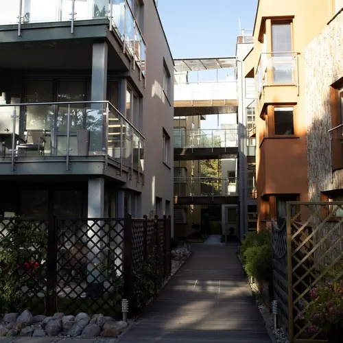 Kompleks czterech budynków (Willa Cztery Żywioły) jest strzeżony i monitorowany całą dobę, posiada ogrodzenie zewnętrzne, zapewniając komfort i bezpieczeństwo.