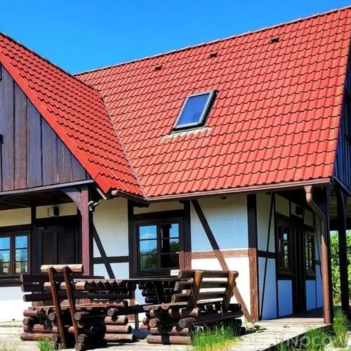 Dom jest całoroczny, w konstrukcji szkieletowej drewnianej z pruskim murem, maksymalnie docieplony (ściany, okna, dach), zabezpieczony instalacją alarmową security. Powierzchnia domu wynosi blisko 100m2 łącznie na 2 poziomach, z możliwością noclegu do 11 osób.