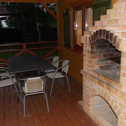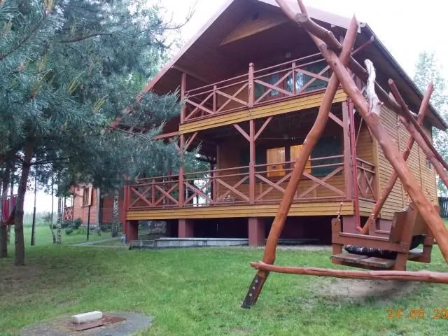 Dom składa się z dwóch dużych sypialni na piętrze oraz z salonu z aneksem kuchennym i łazienki na parterze a także dużego zadaszonego tarasu wokół domu W Otulinie Parku Krajobrazowego Pojezierza Iławskiego i wzgórz Dylewskich Do dyspozycji gości łódka 5-osobowa,dwa rowery, 2 kpl. badmintona. odległość do jeziora to około 250m, las odległość 350m. Teren wokół domku w całości ogrodzony (565 m2).
