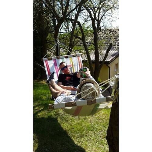 Na działce są do dyspozycji gości hamaki, huśtawka ogrodowa, miejsce biesiadne na grilla.