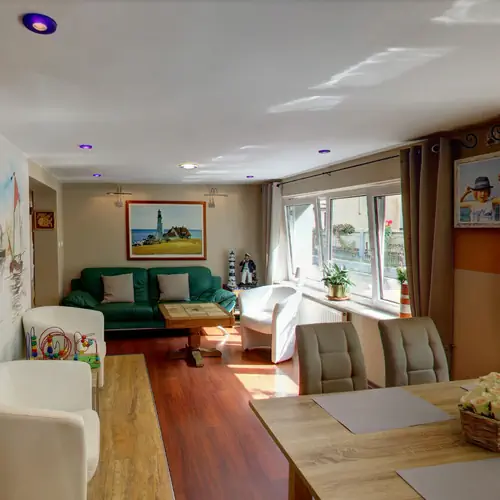 Nasz pensjonat to miejsce pełne ciepła i serdeczności – prowadzony z sercem, z myślą o komforcie każdego gościa. Wnętrza są przytulne, otoczone zielenią i kwiatami, a domowa atmosfera sprawia, że można poczuć się tu naprawdę swobodnie. To idealna przestrzeń dla rodzin z dziećmi, ale też dla seniorów szukających ciszy i odpoczynku. Do dyspozycji gości jest wspólna kuchnia połączona z jadalnią, sala telewizyjna oraz kominek – świetne miejsce na wieczorne rozmowy, gry planszowe i wspólne chwile.