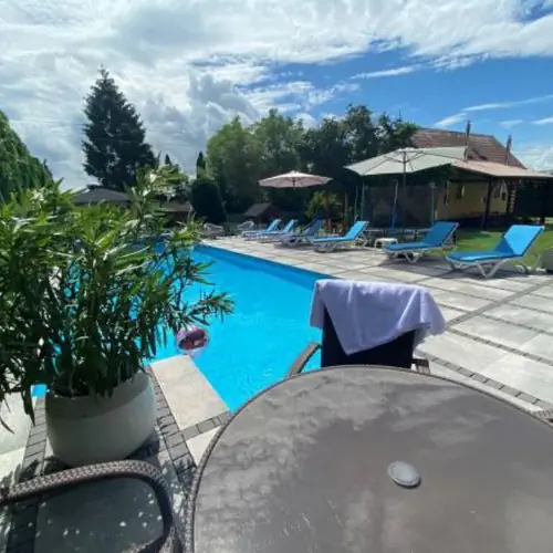 --studio dwupokojowe na parterze dla 4 -ch os. z łóżkiem podwójnym małżeńskim i podwójnym rozkładanym , łazienką i częścią kuchenną ( lodówka, mikrofala, czajnik, zastawa stołowa, płyta gazowa). Pokój na parterze z własną strefą wypoczynkową i widokiem na basen